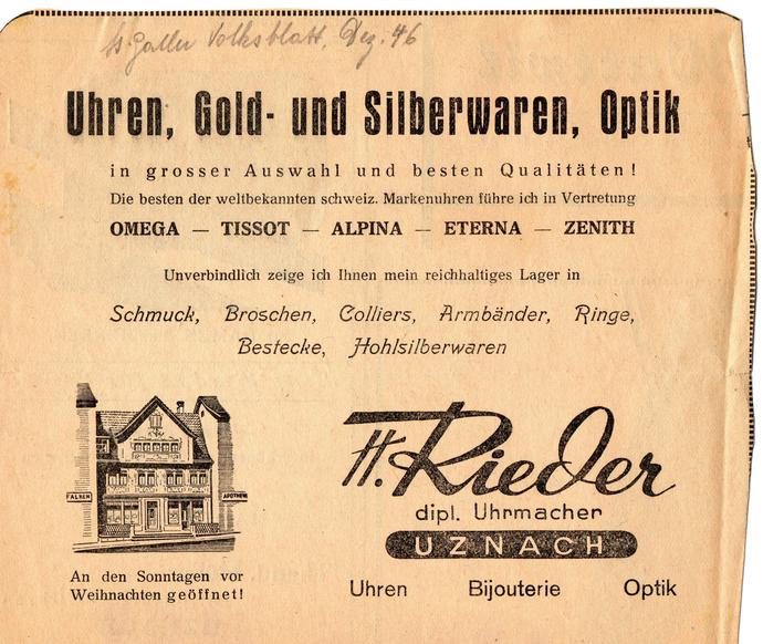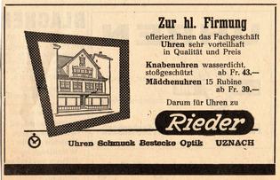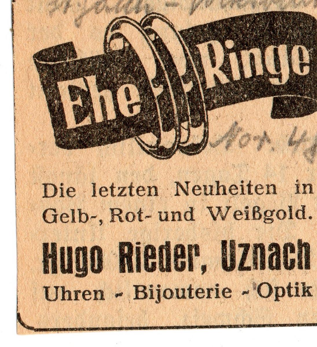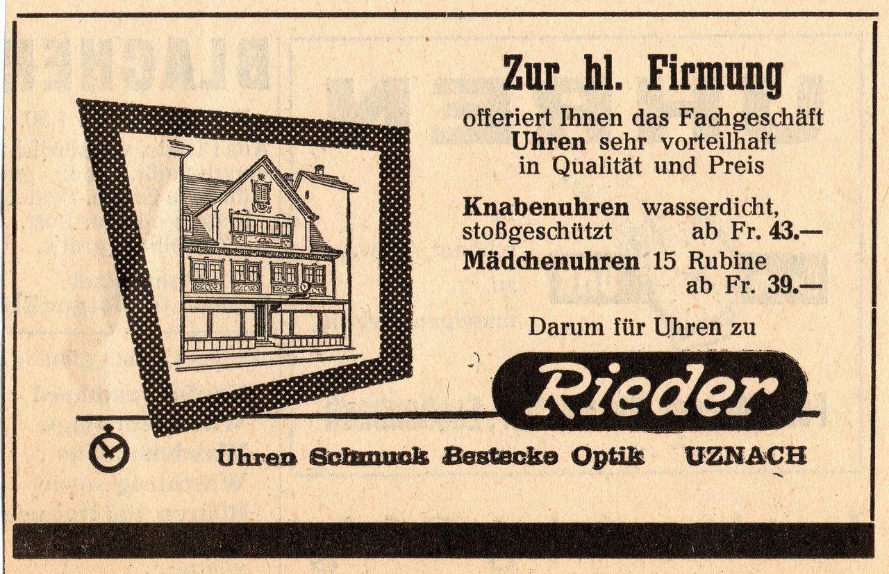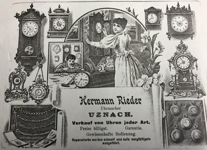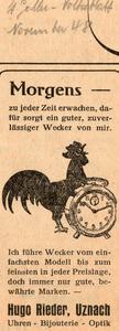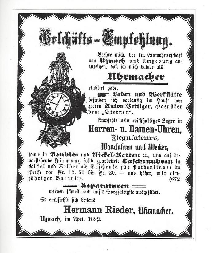 Rieder Uznach seit 1892 - Eröffnungsinserat April 1892