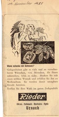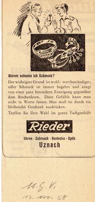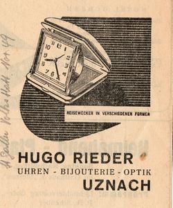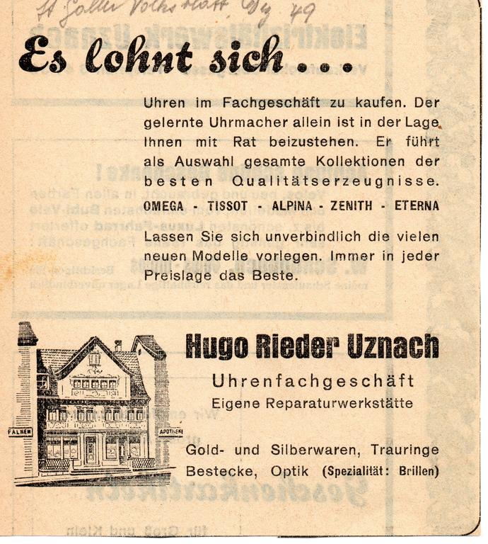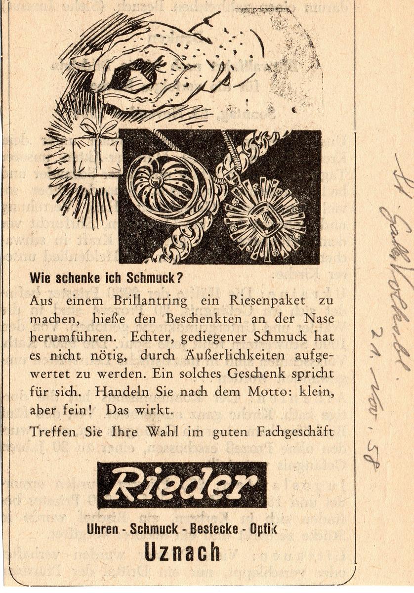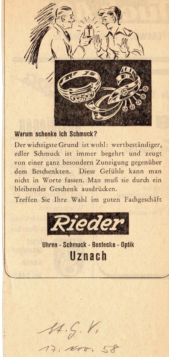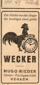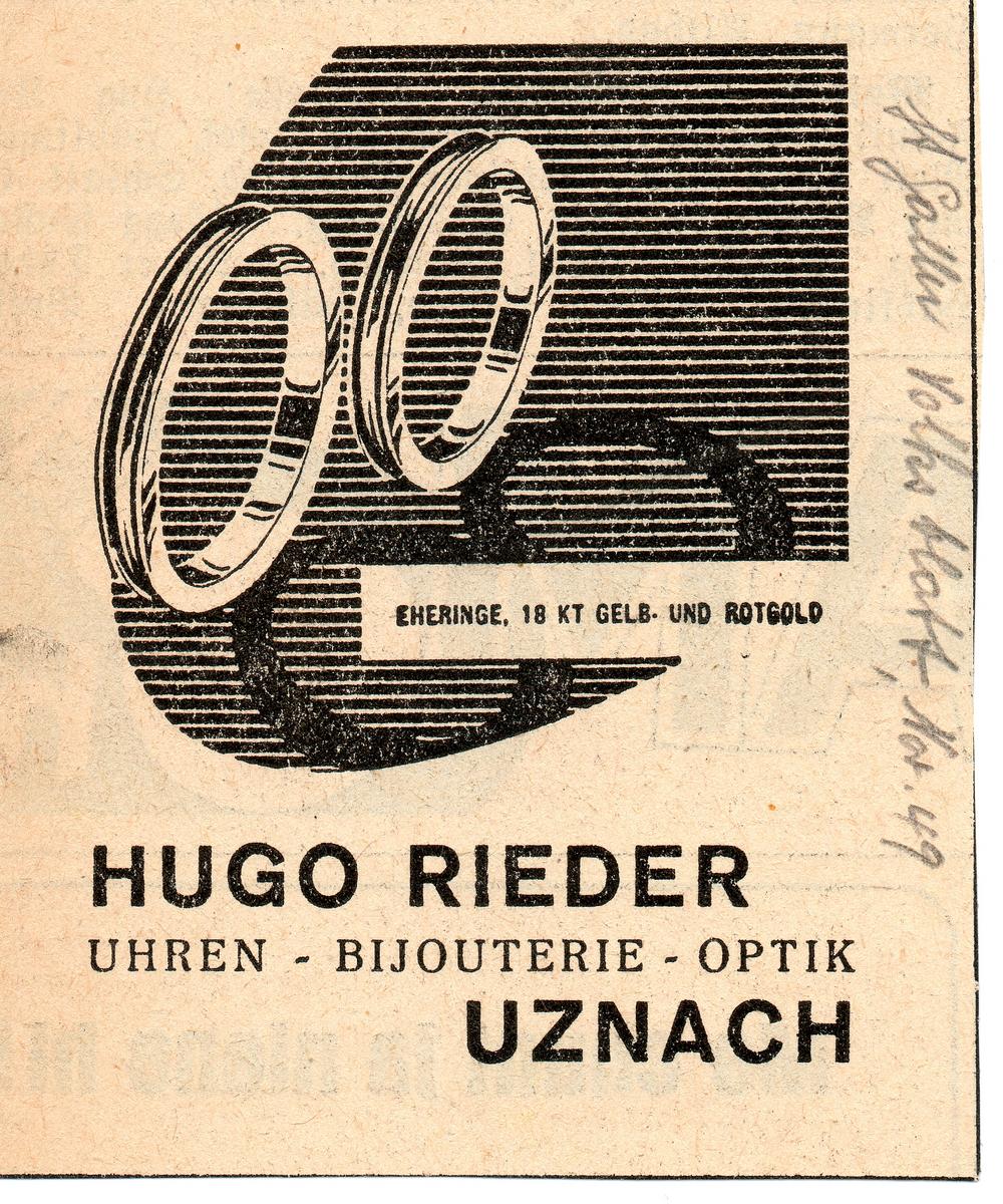 Rieder Uznach seit 1892 - Eröffnungsinserat April 1892